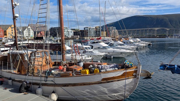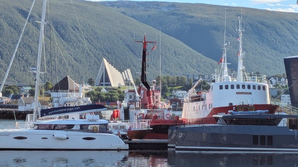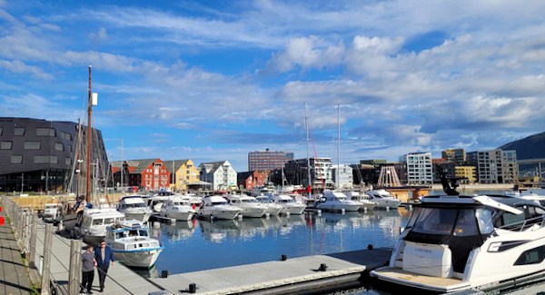 L’ancienne capitale de l’industrie baleinière , est un port actif, un point de départ pour les expéditions polaires et la base d’observation des aurores. Mais cest un peu une ville fantôme ce dimanche. Tous les commerces sont fermés et dans les rues, seuls quelques touristes déambulent. Les habitants ont déserté leur ville pour profiter d’un beau soleil. Hier dans les montagnes c’était l’effervescence : course aux myrtilles, pique nique en famille, nuit sous la tente, ski sur roulettes….