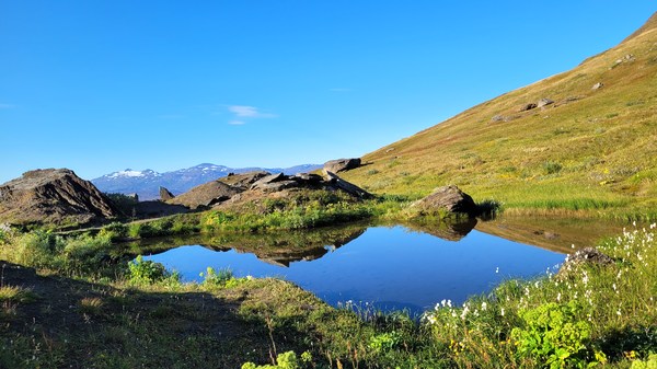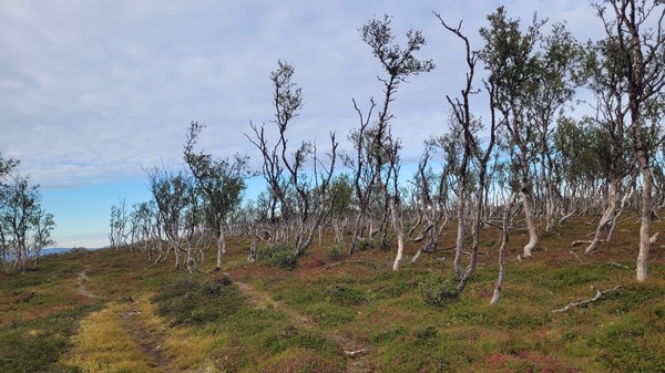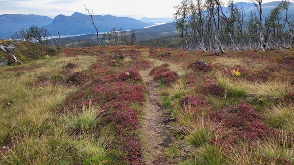 Après une soirée mémorable, nous avons repris la Suède là où on l’avait laissée : au parc national Abisko. Arrivés à 12h30, nous avons préparé les sacs à dos, direction le lac Trollsjon pour une randonnée de 12km aller-retour. Pique-nique au milieu des myrtilles et des airelles, il y en a toujours autant, le rouge est la couleur dominante.