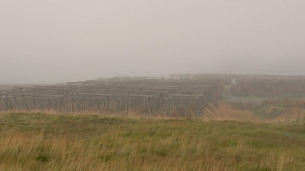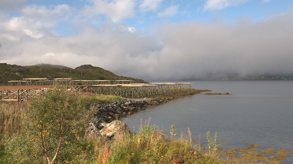 Photo prise à 22H30 avec le téléphone, les séchoirs pour cabillauds éclairés par la pleine lune