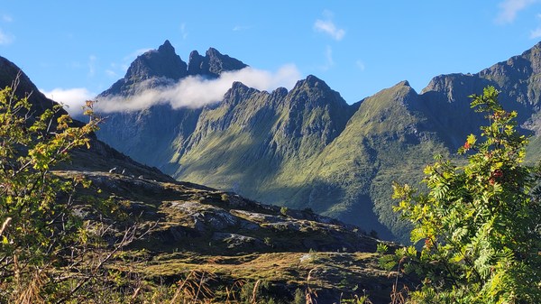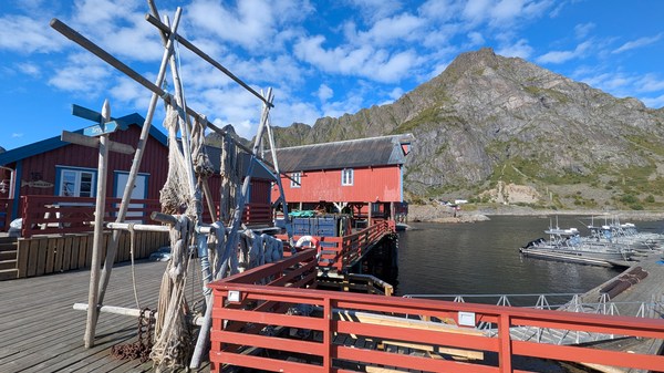 Nous avons passé la journée à Reine et à Å, le dernier village au sud de l’île. La matinée a commencé dans le brouillard qui peu à peu s’est dissipé pour faire place à un beau soleil. Nous avons revu avec plaisir ces lieux magnifiques au pied des montagnes et face à la mer. Il nous manque juste l’odeur et la vue des poissons qui sèchent après la saison de pêche qui a lieu entre février et avril.