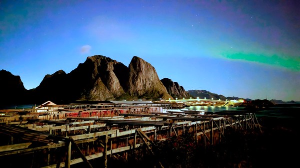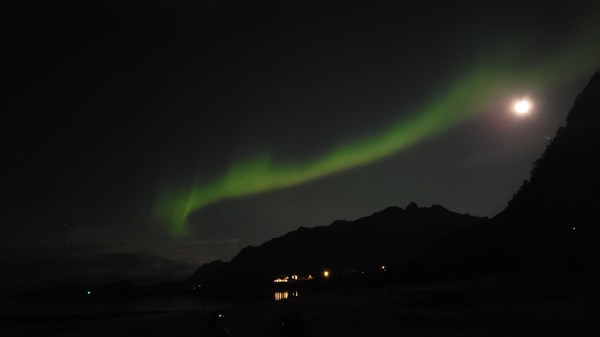 Nous avons donc regardé où il y avait du soleil sans aller trop loin: les Lofoten. Actuellement il fait 19 degrés à 17h. Le KP est à 5, l’horizon dégagé, grand ciel bleu, on aimerait bien que cela fonctionne.