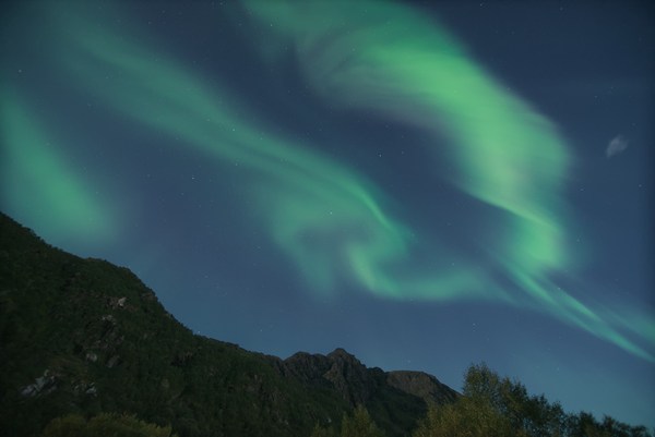 Et ça a fonctionné ! La première à 22h30, bien verte, et après ce fut un défilé non stop jusqu’à 1h. Un spectacle de draperies, ondulations éphémères qui s’évaporent dans la nuit polaire. L’œil ne saisit pas toujours les couleurs surtout le violet ou le rouge mais l’appareil photo lui les capte en prise lente. Bien emmitouflés, nous étions dans un spectacle….grandeur nature.