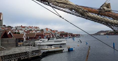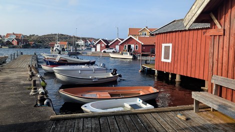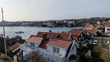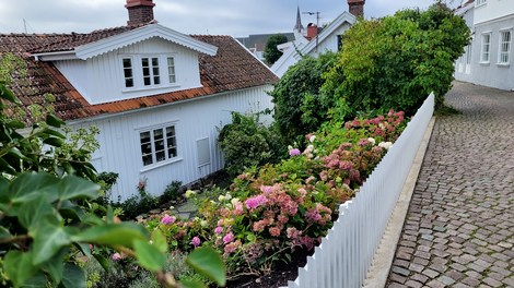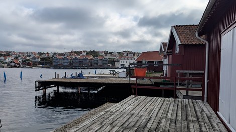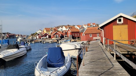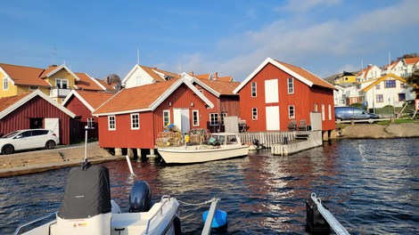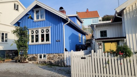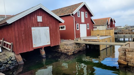 Fiskebackskil, situé sur le fjord Gulmar est un village de pêcheurs interdit aux véhicules. On y vient à pied au travers de ruelles pavées, biscornues et fleuries de rosiers et hortensias. C’est toujours par le port et ses vieilles cabanes rouges que l’on est attiré. Du port un chemin mène à un vieux moulin très pittoresque.