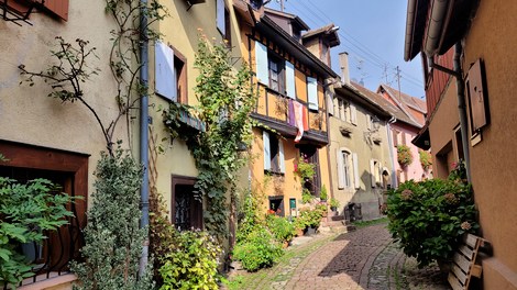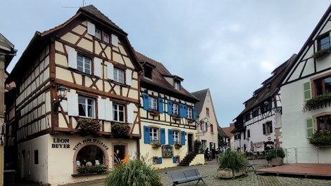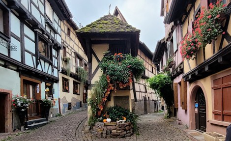 Eguisheim, près de Colmar est un des plus beaux villages de France de forme circulaire. Les maisons aux façades colorées s’enroulent en cercles concentriques autour du château fondé en 720. En 1022, né dans ce même château Brunon d’Eguisheim qui deviendra plus tard le pape Saint Léon. Épargnée par les deux guerres mondiales, la ville fera l’objet d’une importante politique de restauration au 20ème siècle.